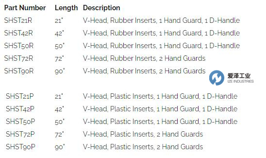 SHST50R | 50" | V-Head, Rubber Inserts, 1 Hand Guard, 1 D-Handle |